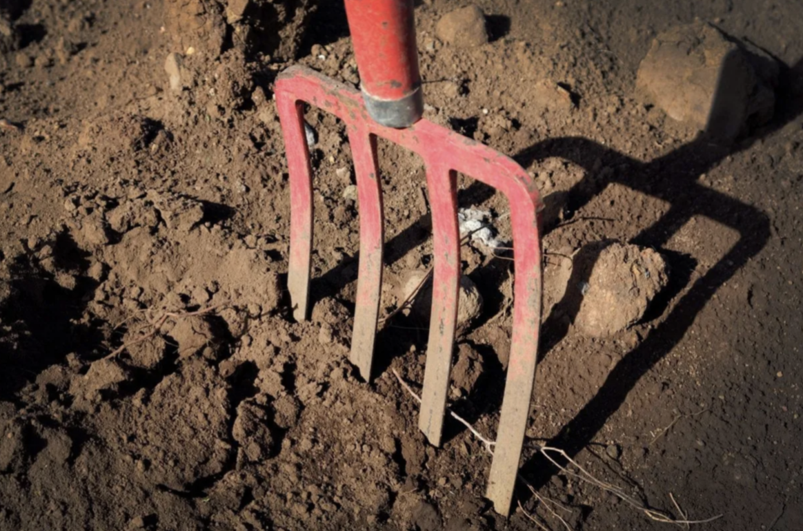 - Grond beluchten en losmaken: duw de tanden in de grond en gebruik je lichaamsgewicht om de aarde op te tillen, waardoor de grond luchtiger wordt zonder alles om te keren (belangrijk voor biologische tuinen).